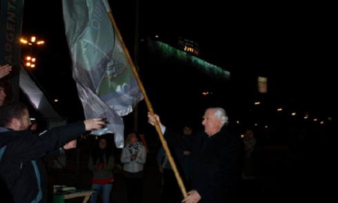 El candidato a Jefe de Gobierno porteño por el Movimiento Proyecto Sur visitó el Obelisco de la ciudad, donde se encuentran los jóvenes de la fuerza, bajo la insignia “100 horas de banderazo por el cambio”. Allí, desde el lunes pasado a las 4 de la mañana y hasta que comience la veda electoral, sostienen una enorme bandera frente al monumento.